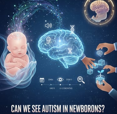 The text explores the possibility of detecting early signs of Autism Spectrum Disorder (ASD) in newborns, emphasizing that this is not about immediate diagnosis but about identifying subtle cues for timely support.